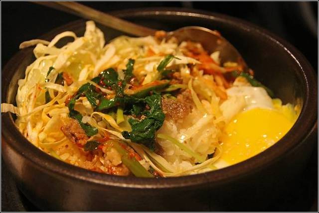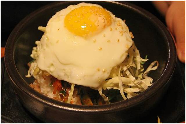 石鍋拌飯(100元),一顆半熟的煎蛋把內容物全都蓋掉了