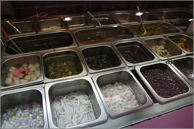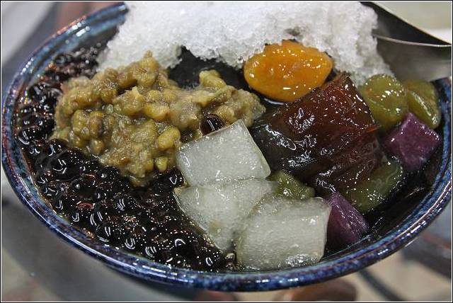 鋪的滿滿的配料,Q的、滑的、蜜的…各種豆類和芋圓口感都很上品