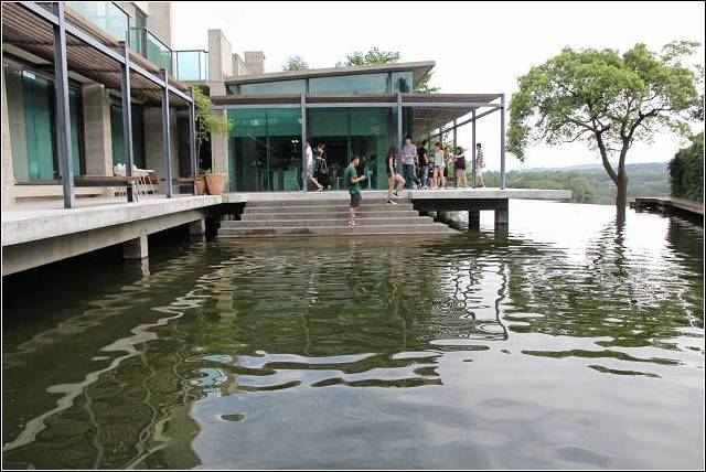 雖然天色不美,但整棟建築很有設計感,水面與湖面相接,延伸出更大的空間感