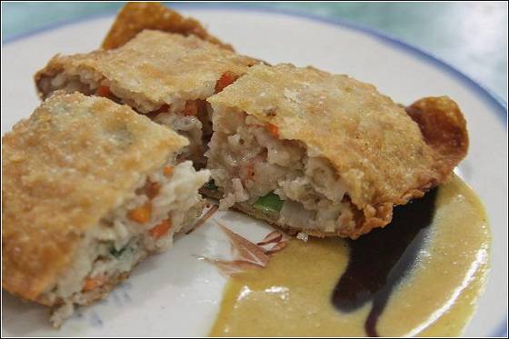 來到滋味嘉 還有一道店家自滿的料理-瓦片蝦餅(60元)是很特別的