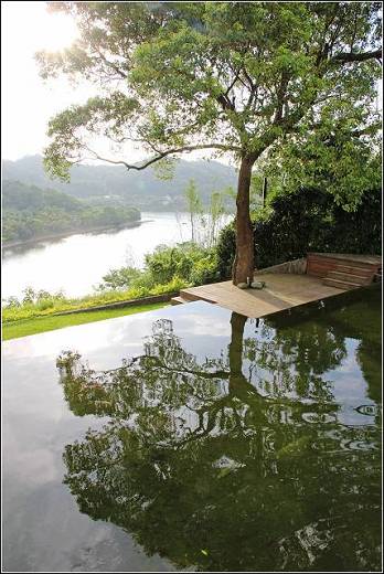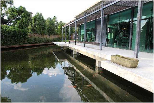 一樓是咖啡廳,二樓三樓則是民宿,這棟建築基本上算是蓋在小池子上