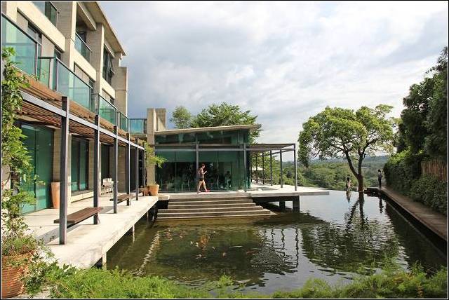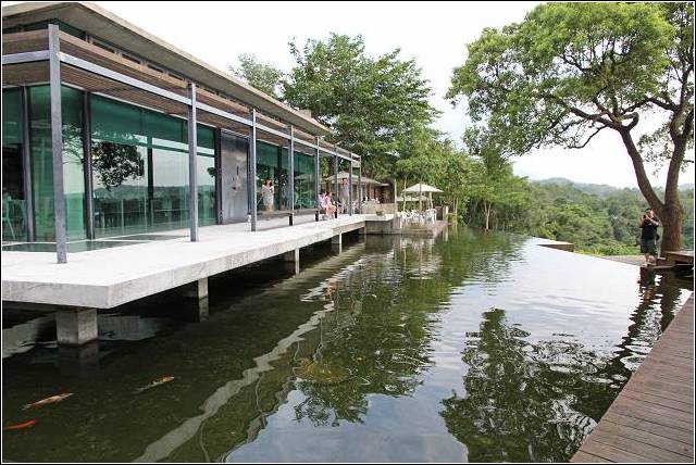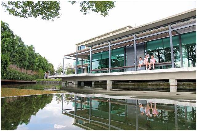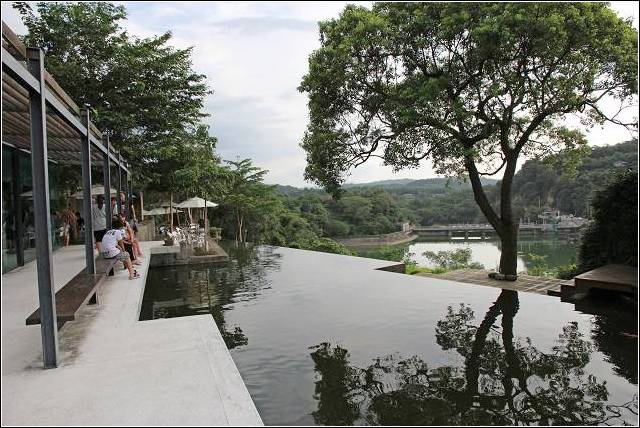 雖然天色不美,但整棟建築很有設計感,水面與湖面相接,延伸出更大的空間感
