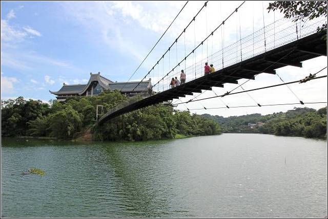 峨眉湖有10座吊牆目前就剩1座,吊橋的另一端接到天恩彌勒佛院