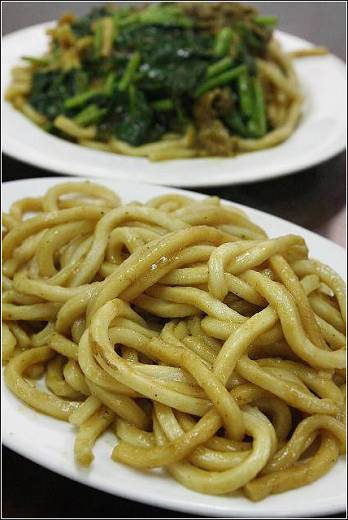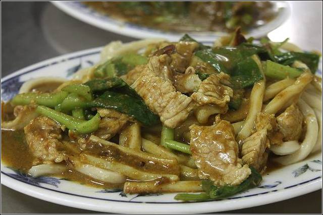 不加料的烏龍麵,只用淡淡的沙茶咖哩微炒過,麵條十分的圓厚
