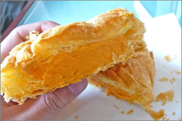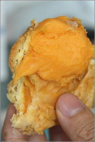 所謂黃金泡芙,就是酥皮包地瓜泥 Size比其他種類大得多,又大又沈幾乎跟一般麵包差不多大了