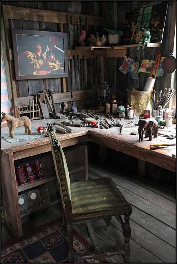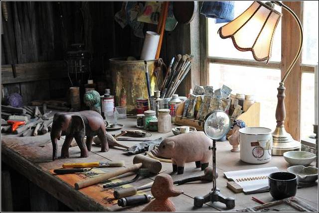 裡頭的雕刻品和木桌木床,在電影拍攝結束後,原汁原味搬到了奮起湖老街上
